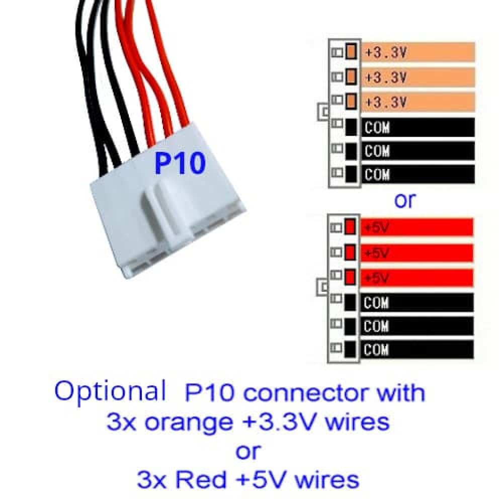 Optional rare P10 connector with +3.3V orange wires (Standard) or +5V red wires. Check your requirements and order the suitable option is required. You can order more than one P10 connector if required. |