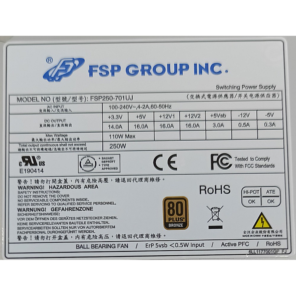 High-quality branded 250-watt Power Supply Unit (PSU) suitable for a variety of systems requiring a 100mm wide 1U PSU as opposed to the smaller 80mm 1U PSU.